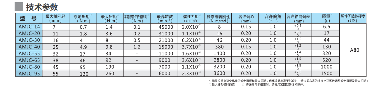 梅花型撓性聯軸器 緊固型時,可在低扭矩狀態下實現零背隙扭矩傳遞優異的彈性效果 具有電氣絕緣性 彈性間隔體的硬度有四種,可根據使用條件選擇使用溫度:-20°C ~ 60°C